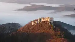 Bás possessed landholdings and villages along the river Garam (Hron) in Esztergom, Bars and Hont counties in Upper Hungary (present-day Slovakia). For his service and loyalty, Bás was granted the estate Mikola (later Garammikola, present-day a borough of Želiezovce, Slovakia) by Béla IV in 1247. The estate later became the centre of the Mezőpilis clan's landholdings in the region.[3] Prior to 1251, the king also donated the estate Szobotist in Nyitra County (today Sobotište, Slovakia) to him.[4] Bás served as ispán of Trencsén County at least from 1251 to 1259.[5] He built the fort of Ugróc (present-day ruins near Uhrovec, Slovakia). With the permission of the king, Bás sold the estate Szobotist "due to lack of money" to Aba the Great from the clan of the same name for 40 silver marks in 1251.[4] As ispán, Bás acted as royal commissioner to determine the borders of donated lands throughout Trencsén County in the 1250s, for instance in 1252, 1255 and 1256.[4]
