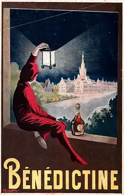 In 1863, Alexandre Le Grand developed a recipe for a herbal liqueur, helped by a local chemist, from old medicinal recipes he had acquired from a religious foundation where a maternal grandparent had held office as a fiscal prosecutor. To market it, Le Grand embellished a story of it having been developed by monks at the Benedictine Abbey of Fécamp in Normandy and produced by them until the abbey's devastation during the French Revolution.[2] Le Grand began production under the trade name "Bénédictine", using a bottle with a distinguishing shape and label. To reinforce the myth, Le Grand placed the abbreviation "D.O.M." on the label, for "Deo Optimo Maximo" ("To God, most good, most great"), used at the beginning of documents by the Benedictine Order to dedicate their work.