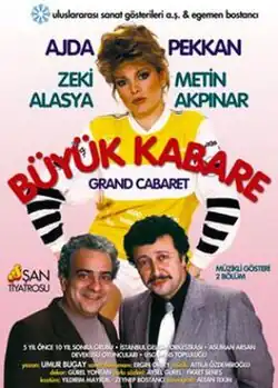 Büyük Kabare (Grand Cabaret) is a two-part musical performed by Turkish singer Ajda Pekkan and Turkish actors Metin Akpınar and Zeki Alasya for the first time in 1982. Beş Yıl Önce, On Yıl Sonra, Istanbul Developmental Orchestra, Asuman Arsan, Devekuşu Cabaret and USG Dance Group accompanied them on stage. The show went on stage for the first time at the Open-Air Theatre in Istanbul on 6 August 1982 and was held in different cities in the following periods.