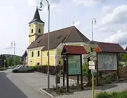 The main landmark of the town centre is the Church of Our Lady of Sorrows. It was built in 1721 on the site of a chapel from the late 17th century. The church was completely rebuilt into its current Neoclassical form in 1826–1846.[8]