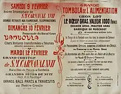 The first prize in the Rennes student tombola for Mi-Carême 1938 is a Bœuf Gras.[35]