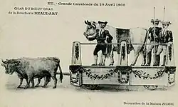 In the cavalcade of May 20, 1907, a Char de la Boucherie, Char du Bœuf Gras, marches past.[10]
