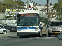 The B82 and B82 SBS comprise a high-volume east-west route in Brooklyn, serving Coney Island, Bensonhurst, Midwood, Flatlands, Canarsie, and Spring Creek. The B82 runs all times,[1] while the B82 SBS runs weekdays only.[2] They serve as a feeder route to several subway stations including Canarsie–Rockaway Parkway at Glenwood Road, Kings Highway at East 16th Street, Kings Highway at McDonald Avenue, Kings Highway at West 7th Street, Bay Parkway at 86th Street, and at Coney Island–Stillwell Avenue.[4] The B82 SBS, however, does not serve the Coney Island subway station, as it terminates at Bay 37th Street.[2] Between Canarsie and Bensonhurst, the B82 runs parallel to or concurrent with the B6 local and limited-stop routes. The B82 also shares Kings Highway with the B7 local route between Flatbush Avenue and Coney Island Avenue.[5] The B82 SBS serves Avenue K from Flatbush Avenue to Utica Avenue,[2] where the B82 local does not.[1][5]