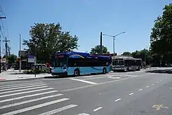 The B82 Limited was recommended for conversion to a Select Bus Service bus rapid transit route by multiple studies.[19][20][21] As part of the conversion process, bus lanes were installed in conjunction with Vision Zero improvements, such as additional crosswalks and pedestrian islands.[22] Three route modifications were made in conjunction with the implementation of B82 service. All B82 SBS service began to terminate at Cropsey Avenue and Bay 38th Street; only B82 local service would continue to Coney Island, because of low ridership between Cropsey Avenue/Bay 38th Street and Coney Island. To avoid congestion, the B82 SBS was rerouted via Avenue K instead of using Flatbush Avenue to connect Flatlands Avenue and Kings Highway. Additionally, the B82's circuitous westbound routing to the Rockaway Parkway subway station was streamlined. The B82 used to continue west on Flatlands Avenue where it made a right onto East 96th Street and then onto eastbound Glenwood Road. At East 98th Street, the B82 turned left into the Rockaway Parkway terminal, where it made an additional 180-degree turn onto southbound Rockaway Parkway. The B82 turned right at Flatlands Avenue and resumes its westbound route.[23] This detour sometimes took as long as 10 minutes to get back to Flatlands Avenue. To reduce travel time, westbound buses were rerouted via Glenwood Road, when the road was converted from one-way to two-way.[24]