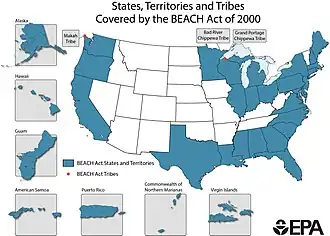 - ^ EPA, OW, OST, US. "About the BEACH Act". www.epa.gov. Retrieved 2016-12-04.