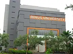 Bina Nusantara University, also known as BINUS UNIVERSITY, is a private university in Indonesia. The main campus of the university is located in Kebon Jeruk, West Jakarta. Most of its campuses are located within the area of Greater Jakarta Region. It also has campuses at Bandung, Malang, Bekasi, and Semarang.