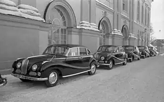 During the 1950s and 1960s, the 501 radio patrol cars were widely used as police vehicles by many police departments in Bavaria, including Bavarian State Police and Munich City Police (Stadtpolizei München). The car with its relatively fast 145 km/h (90 mph) top speed by 1950s standards, was a blessing for police, as most criminals did not have easy access to faster cars like a Mercedes-Benz 300 SL or a Porsche. The traffic police units for country roads and Autobahns were even issued V8-powered cars, which were even faster.[34] The police cars also featured a Lorenz radio telephone, allowing police officers to easily communicate with the dispatch. Munich police force used seventeen 501 patrol cars, which were used for about 10 years and about 130,000 service kilometers before being retired.[35][36] The last two police cars were delivered to Amberg in 1965, after 501's production had ended. They were retired by 1971 due to rust issues.