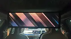 The G70 receives the "BMW Live Cockpit" setup, which combines a 310 mm (12.3 in) digital instrument cluster with a BMW's 14.9 in (380 mm) Curved Display for the infotainment touchscreen, which both run BMW iDrive 8, the newest iteration of BMW's infotainment system.[34] The G70 also features navigation, wireless Apple CarPlay and Android Auto, DAB+ radio, over-the-air updating, and a range of third-party apps as well as in-car gaming.[37] Additionally, a head-up display with different views is standard.[34] Optional on the 7 Series is a large 800 mm (31.3 in), 8,000-pixel "Theatre Screen". When being used, this display can stream movies and shows from Amazon Fire TV via the eSIM connection, or a device can be hooked up via an HDMI cable to stream any show. A camera is standard on the screen, which can stream meetings or video calls while in the vehicle. Buyers may subscribe to other streaming services such as Netflix, Hulu and Max.[38][34][39] Additional luxuries include heated front and rear seats, heated steering wheel, heated surface, front centre console armrest, front seat ventilation, front seat massage function, quad-zone climate control, and BMW's Panoramic Glass Roof Sky Lounge.[34][40]