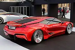 The M1 Homage concept was first shown to the public at the Concorso d'Eleganza Villa d'Este of 2008. The design was penned by BMW's in-house design team, inspired by both the original M1 and the BMW Turbo concept designed by Paul Bracq.[10] The BMW Turbo had many technical and advanced innovations from BMW that were part of the inspiration of the M1 Homage concept.[11] The front of the car differs the most from the other parts of the car. The front sports double head lights which are not the same as pop-up type that are on the original M1, but the usual trademark of the kidney grilles is present. The M1 Homage also incorporates the double badge on the back of the car like the original M1. There are no photos of the interior of the car or of the car in action, nor have the specifications of the car been released as the car was meant only to be a design exercise.
