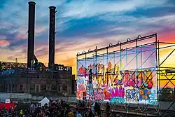 BUKU Music + Art Project is a New Orleans–based two-day music and arts festival founded in 2012 by Winter Circle Productions and held annually at Mardi Gras World.[1][2] BUKU considers itself to be a boutique event that delivers a big festival punch without compromising its house-party vibe. BUKU seeks to serve as a platform for the intersection of pop culture and the New Orleans underground arts community, and combines international musicians with local food vendors, local visual artists, and various surprise pop-up street performers throughout the site. BUKU's musical tastes have been a relatively even mix of electronic dance music, hip hop music, and indie rock featuring past performances by Bassnectar, Lana Del Rey, Kid Cudi, Migos, MGMT, Travis Scott, A$AP Rocky, Illenium, Nas, Excision, Major Lazer, Alt-J, TV on the Radio, A Day to Remember, REZZ, Flosstradamus, deadmau5, Kendrick Lamar, Porter Robinson, Pretty Lights, RL Grime, Seth Troxler, Future, Ellie Goulding and dozens of others.[3][4][5]