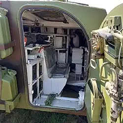 The M-80A is armed with one 20 mm gun, co-axial machine gun 7.62 mm and twin launcher for wire-guided anti-tank missiles. It is NBC protected, fire suppression system, inside heating and water ejecting system. It is fully amphibious and can perform crossing of any water barrier without previous preparations. Max. speed at water is 7 km/h. Crew consist of three, driver, commander and gun operator and in the after compartment, there is space for six fully equipped infantrymen who can engage the enemy with personal armament through six gun slits on both vehicle sides and back doors and one squad leader who commands infantry upon exiting the vehicle. Infantry leaves IFV through two doors at the back of the vehicle.[7]
