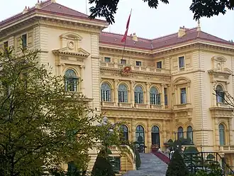 After the entire large area of Hà Tây Province was merged in Hà Nội City in August 1, 2008, along with a number of small lands of two provinces Hòa Bình and Vĩnh Phúc, the important political agencies of the Government of Vietnam have gradually moved to newly established urban districts in the west of the city. This move has been said that in the policy[note 2] of reducing the cause of traffic congestion, and at the same time, facilitating development for poor localities in the west of the capital.[4][5] According to this project, after the system of agencies has been transferred to another places, the entire Ba Đình District will enter the restoration phase for architectural works that have been degraded for many different reasons.[6][7] Therefore, until the early 2020s, except for the Presidential Palace and Government Guest Hall where were still used for ritual and diplomatic activities, almost the space of Ba Đình District has been converted to purposes of culture, education, and especially tourism.