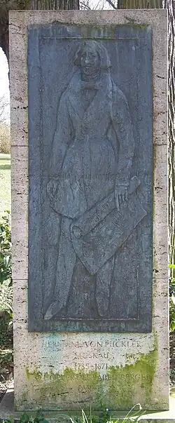 In 1843 the former adjutant of the Grand Duchy of Weimar, Prince Hermann of Pückler-Muskau was given the task of continuing the landscape work. He had published his book Andeutungen über Landschaftsgärtnerei ("Thoughts on Landscape Gardening") and was probably known to Augusta, who came from the House of Saxe-Weimar.