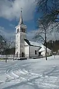 The local church on the northern edge of the settlement is dedicated to Saint Anthony the Hermit and belongs to the Parish of Stari Trg.[5] It was first mentioned in written sources dating to 1403. The date on the door casing, 1589, indicates a late 16th-century rebuilding of the original church. The main altar dates to 1716.[6]