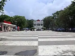 The Bacolod Public Plaza, officially the Plaza del 6 de Noviembre,[2][3] named after the day of the Spanish surrender of Negros Island to the Negros revolutionaries, is one of the notable landmarks of Bacolod, the capital of Negros Occidental, Philippines. It is located in the heart of the downtown area, near the old city hall and across from the San Sebastian Cathedral. The plaza is a trapezoidal park with a belt of trees around the periphery and a gazebo at the center. Scattered within the trees are four circular fountains.
