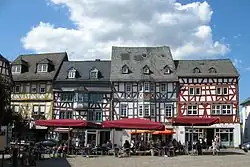 Timber-frame houses with shops on Bad Camberg's marketplace, along which ran the Via Publica.