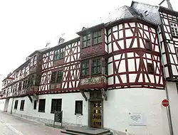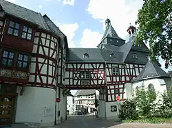 The town's most popular sightseeing spot is the row of timber-frame houses that together make up the Amthof, the seat of the long defunct Amt. It stretches over a frontage of 155 m,[14] making it one of Hesse's biggest timber-frame structures. The representative building was built in 1605 on a former building's foundations. In the years that followed, up until 1669, it was further expanded and the three formerly separate buildings were melded into one great structure.