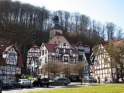 The spa town of Bad Sooden-Allendorf lies in the Werra valley near the Hoher Meißner, right on the boundary with Thuringia, almost at Germany's geographical centre, 33 km east of Kassel.
