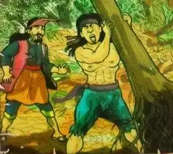 Badang was a Malay boy from Batu Pahat, in the northern part of the Sultanate of Johor (corresponds to the modern day state of Johor, Malaysia). He was the only son of two poor farmers who worked hard until the day they died. As a young man, Badang worked as a coolie for the rich farmer Orang Kaya Nira Sura in a place called Salung or Saluang in Aceh, Sumatra (modern-day Indonesia). Badang was small-statured and the weakest of his group. Their job was to clear through the undergrowth to make way for new fields. As slaves, they didn't get paid and received only a few handfuls of rice each day. This was hardly enough to satisfy the hunger of such arduous work, so Badang relied on catching fish for extra sustenance. He set his fish-traps along the stream every evening and gathered the net the following morning.