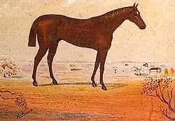 Baden-Baden (1874 – date of death unknown) was an American Thoroughbred racehorse best known for winning the 1877 Kentucky Derby. He was bred by A. J. Alexander at his Woodburn Stud in Woodford County, Kentucky. Baden-Baden was sired by Australian (GB) (who in turn was sired by West Australian, first horse to win the English Triple Crown in 1853); his dam, Lavender, was sired by Wagner.[1] He was purchased at Woodburn's yearling sale by Kentucky horseman Daniel Swigert, from Elmendorf Farm.