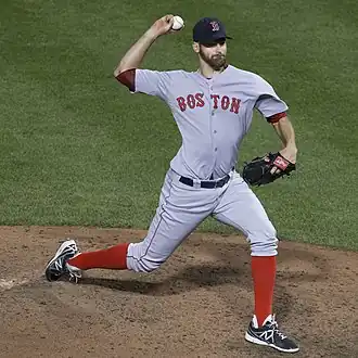![]() Badenhop pitching for the Boston Red Sox in 2014 | |