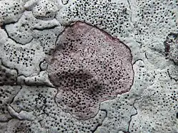 Bagliettoa is a genus of lichen-forming fungi in the family Verrucariaceae.[1] Bagliettoa species are endolithic, growing between the grains of solid rock. These lichens are almost invisible to the naked eye, living mostly hidden within limestone and other calcium-rich rocks with only a thin polished rim visible on the surface. They reproduce through tiny flask-shaped fruiting bodies that bore neat pits into the rock as they develop.