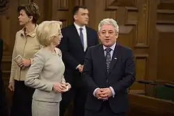 In April 2017, Braže celebrated the 98th anniversary of the statehood of Latvia in London where she addressed guests and reminded them of the Latvian support for the UK at the end of World War I and said "we hope that will never be necessary again."[16] The event was attended by various dignitaries including MP Mark Prisk, Ambassador Peter Ammon and Ambassador Arkady Rzegocki.[16] In July, Braže travelled to Northern Ireland where she met with Latvian Honorary Consul to Northern Ireland, Gerard O'Hare, and in an interview she described Brexit as "big news" because "nobody expected it."[17] On 4 December 2017, Braže launched Latvia's centenary celebrations in the United Kingdom alongside Secretary of State for Foreign and Commonwealth Affairs, Boris Johnson, by lighting a Christmas tree given by Latvia in Lancaster House.[18][19] Whilst Johnson spoke about the relationship between Latvia and the UK, Braže highlighted the close historical ties and pointed to the well developed cooperation between the countries.[18]