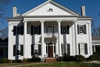 It was deemed an "exceptionally fine Greek Revival home in the piedmont region of Georgia. The quality of its detailing and the proportions of its composition, as well as its commanding location, contribute to its distinction." The house consists of a square two-story section with a hipped roof and projecting one-story wings, also with hipped roofs. It has a two-story, three-bay, four-column portico surmounted by a pediment. "Above this portico and around the entire central portion of the house is a strongly projecting cornice and a simple, precisely delineated entablature."[2]