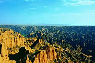 Baiyin (simplified Chinese: 白银; traditional Chinese: 白銀; pinyin: Báiyín; lit. 'White-Silver') is a prefecture-level city in northeastern Gansu province, People's Republic of China. Established in the 1950s as a base for mining non-ferrous metals, its mines are becoming exhausted in recent decades, requiring the city to reinvent its economy.[3][4] Located around 60 km (37 mi) from Gansu's capital Lanzhou, it is part of the Lanzhou-Baiyin Economic Belt.[5]