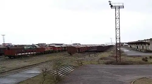 The Bajzë Rail Station (Albanian: Stacioni Hekurudhor i Bajzë) is a railway station located in Bajzë, Albania.[1] It is operated by Hekurudha Shqiptare (Albanian Railways) and part of Montenegrin-Albanian cross-border freight line between Podgorica, capital of Montengero, and Shkodër, Albania. Two freight trains pass daily through the station, hauling over 10,000 tonnes of commodities monthly.[2] Long term plans exist to establish and operate international passenger trains between Albania and Montenegro via Bajzë. The vast majority of Albanian entrepreneurs import their goods through the railway line from all over Europe, as transport through train is about 50% cheaper than road transport.[3] Cleaning of toxic chemicals, which had been dumped during 1991-1992, finished in 2009.[4]