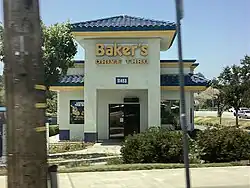 Baker's Burgers, Inc.,[1][2] doing business as Baker's Drive-Thru, is a chain of fast-food restaurants in the Inland Empire region of Southern California. The menu combines both American fast food and Mexican specialties. It features hamburgers, french fries, tacos, burritos, quesadillas, and milkshakes.[3] A breakfast menu and vegetarian menu are also available at most locations.