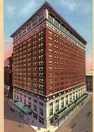 The Baker Hotel was a former grand hotel located in the heart of downtown, Dallas, Texas, across the landmark Adolphus Hotel and the Magnolia Hotel. Its interiors were remodeled in 1972 after a fire, and was imploded in 1980 to make way for the Whitacre Tower, which occupies its site today.