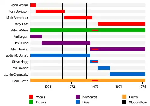 | Past members | Hank Davis Mal Logan Eddie McDonald Peter Walker John Worrall Rex Bullen Tom Davidson Mark Verschuer Steve Hogg Paul Ewing Barry Leef Phil Lawson Jackie Orszaczky |