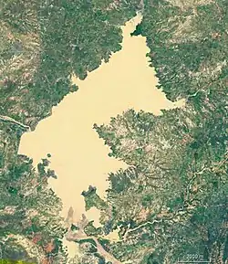 The dam has a capacity of 450 million cubic meters, with a reservoir covering 8,000 hectares extending 19 km (12 mi) upstream.[2]