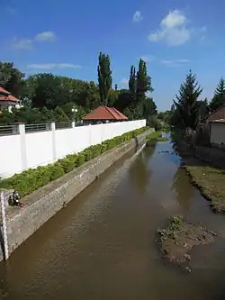 In Královice, the stream is crossed by a Baroque stone arch bridge, protected as a cultural monument. The bridge was built shortly after 1871 and is decorated with statues of saints Wenceslaus and John of Nepomuk.[4]
