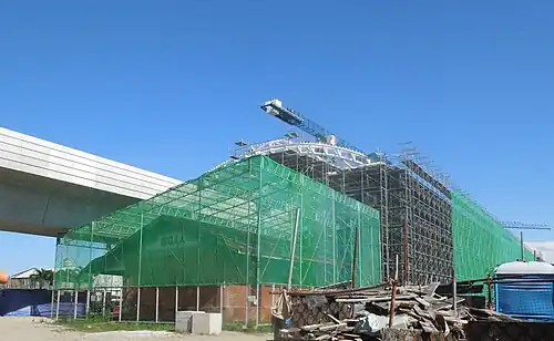 The old Bigaa Station in protective sheathing dwarfed by the future Balagtas Station