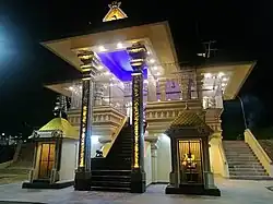The Arulmigu Balathandayuthapani Temple, also known as the Waterfall Hilltop Temple, is a Hindu temple within George Town in the Malaysian state of Penang.[1] Dedicated to Lord Murugan, the hilltop temple, with its seven-storey 21.6 m-tall gopuram (main tower), has been touted as the largest Lord Murugan temple outside India.[2][3] It is sited comparatively higher above ground than Batu Caves, with devotees having to climb over 500 steps to access the place of worship.[1]