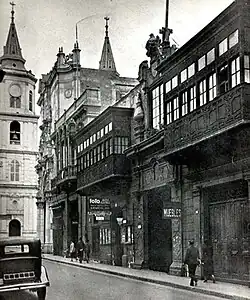 The earthquakes of 1655, 1687, 1746 and 1940 destroyed many of the old colonial structures in Lima designed by Francisco Pizarro[4] and transformed the city's politics and architecture. Sturdy and less elaborate styles became increasingly popular after 1746 in order to ensure the stability of buildings.[3] After the earthquake of 1940, Bruno Roselli, a Florentine art history professor known as the "defender of balconies", endeavored to salvage numerous balconies, many of which were of the 17th and 18th century styles.[5] So committed was he to their salvation that he compared the balconies' importance to that of the Eiffel Tower, Statue of Liberty and the lions in Trafalgar Square.[6] However, he was not successful.
