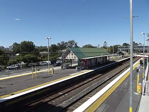 Bald Hills railway station is located on the North Coast line in Queensland, Australia. It serves the Brisbane suburb of Bald Hills. On 28 August 2000, a third platform opened as part of the addition of a third track from Northgate.[1][2]
