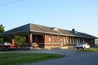 The Missouri Pacific Depot is a historic railroad station at Market and Ramey Streets in Bald Knob, Arkansas. It is a rectangular single-story structure, framed in wood and finished in brick, with a broad shallow-pitch hip roof. The northern side of the roof, where passengers waited, is supported by brick posts and has large L-shaped brackets. Built in 1915, it is Bald Knob's second railroad station, a reminder of the role the railroad played in the city's development.[2]