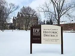 The Baldwin-Wallace College South Campus Historic District is an area of land on the south end of the Baldwin Wallace University campus. When the district was established, the school was Baldwin-Wallace College. BW is a four-year private, coeducation, liberal arts college in Berea, Ohio, United States. The school was founded in 1845 as Baldwin Institute by Methodists settlers. Eventually the school merged with nearby German Wallace College in 1913 to become Baldwin-Wallace College, which adopted the present name in 2012.[2] Several buildings since its founding have been established on the National Register of Historic Places, establishing this area as the Baldwin-Wallace College South Campus Historic District.[1]