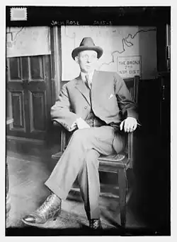 Before World War I he moved to New York City, where he operated a successful Second Avenue gambling resort in East Side Manhattan known as The Rosebud. His place was soon a popular underworld hangout, particularly by the Eastman Gang, and Rose became closely associated with Monk Eastman, "Big" Jack Zelig, and the Lenox Avenue Gang.[1][3] He was such a popular Broadway character that a cocktail, containing "one jigger of applejack, juice of half a lemon, half an ounce of grenadine, shaken with cracked ice, and strained," was named in his honor.[2][4]