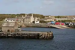 Balfour is a village on the island of Shapinsay, Orkney. The village is situated on Elwick Bay, which was used as an anchorage by Haakon IV of Norway before sailing south to eventual defeat at the Battle of Largs in 1263.[1] Today, the village still possesses a harbour, with mock defensive walls constructed at the same time as the castle. David Balfour even added a stone marked with the date 1725, taken from Noltland Castle on the island of Westray, to his defences.[2] A car ferry to Kirkwall, operated by Orkney Ferries, sails from a pier at the harbour. This became a roll-on/roll-off service in 1990.[3]
