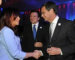 President of Argentina Cristina Fernández de Kirchner, President of the European Commission José Manuel Barroso and Prime Minister Jan Peter Balkenende in Toronto on 10 June 2010.