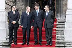 Prime Minister Jan Peter Balkenende with President of Russia Vladimir Putin, President of the European Commission José Manuel Barroso and High Representative for Common Foreign and Security Policy Javier Solana at the EU–Russia Summit in The Hague, 25 November 2004.