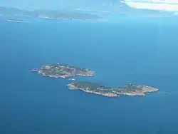 The Ballenas Islands are a pair of islands in the Strait of Georgia off the coast of British Columbia, Canada. West Ballenas Island is a BC Provincial Park[1][2] while South Ballenas Island remains Crown land held by the Government of Canada.[3] The Ballenas Island Light is on the northern tip of West Ballenas Island.[4]
