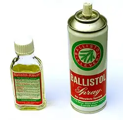 Ballistol (meaning 'Ballistic Oil') is a mineral oil-based chemical which advertises that it has many uses. It is manufactured and distributed by Ballistol GmbH in the Bavarian village of Aham and was originally intended for cleaning, lubricating, and protecting firearms.