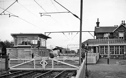 For most of its passenger services, it was the terminal station. A few services, connecting with the steamer services to Tarbet and Inversnaid, continued to Balloch Pier.[2] This pattern of service continued after electrification of the line in the 1960s. Between 1856 and 1934, it was served also by trains to/from Stirling over the Forth and Clyde Junction Railway. The main line from just north of Dalreoch Junction was singled in 1986 and thereafter all trains used the former southbound platform up until closure.