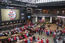 - Budweiser Brew House: 20,000 square foot (1,900 m2) beer garden serving more than 100 beers, German-inspired cuisine, nightly live music, and rooftop seating with views into the stadium.[1][7]
