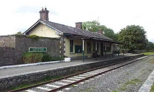 Ballyglunin station, in 2014, with signage indicating the fictional name (Castletown) used in The Quiet Man
